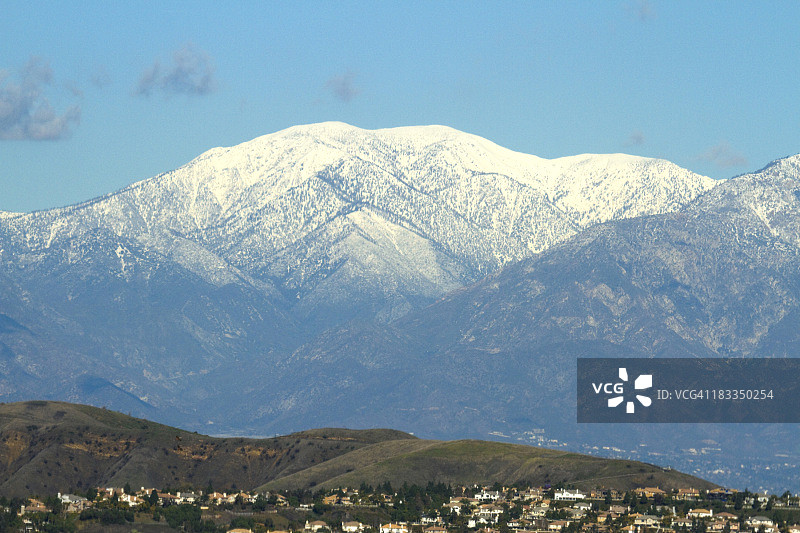 白头山及附近城镇的雪景图片素材