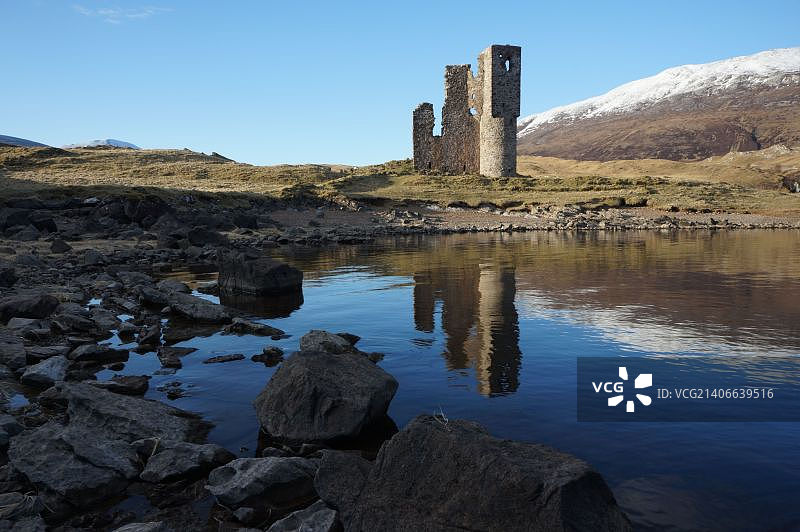 苏格兰高地阿辛特湖阿德弗雷克城堡倒影图片素材