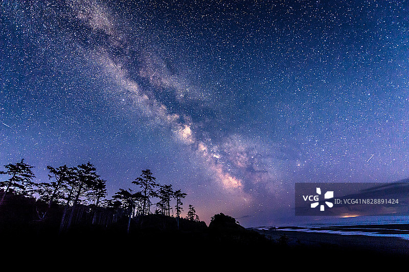 华盛顿州奥林匹克半岛卡拉洛奇海滩的银河和流星图片素材