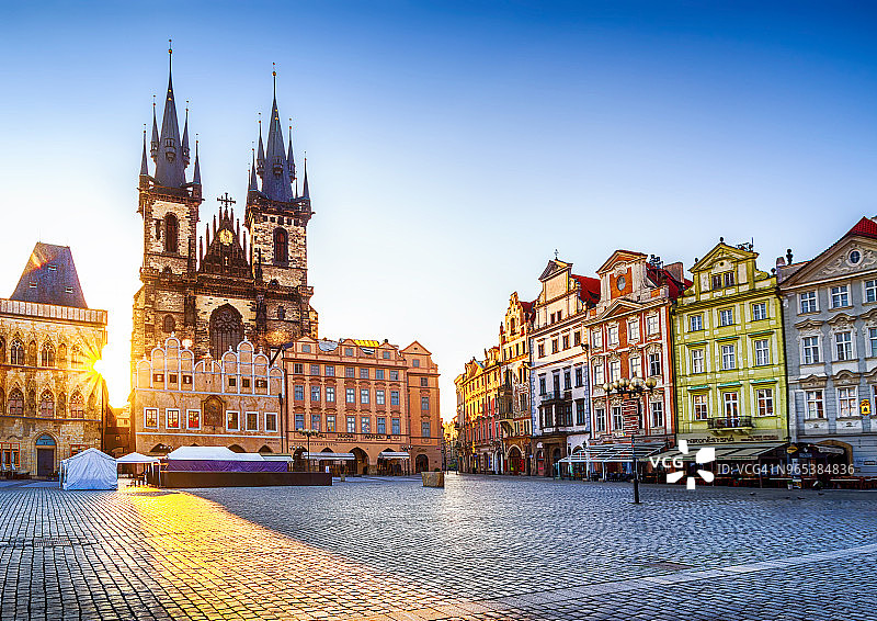 捷克布拉格老城广场和泰恩教堂日出图片素材