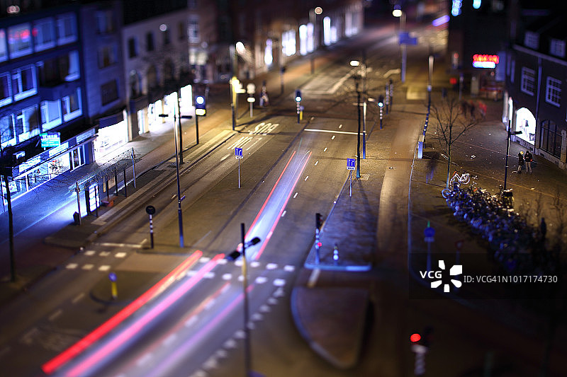 夜晚城市中心交通的微缩效果长曝光图片素材