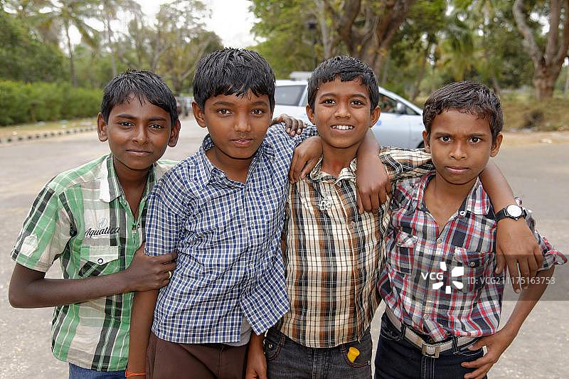 印度南部卡纳塔克邦迈索尔的年轻印度学生图片素材