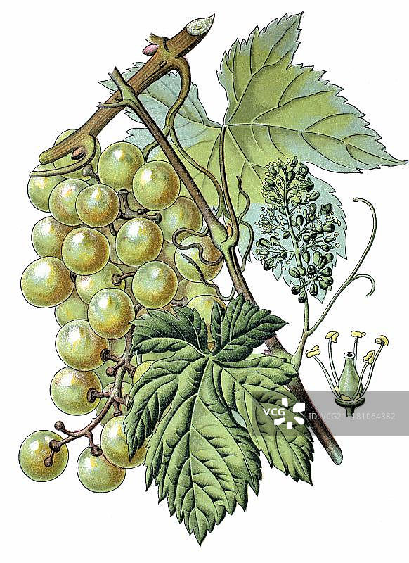 普通葡萄藤(Vitisvinifera),1870年历史彩lithograph图片素材