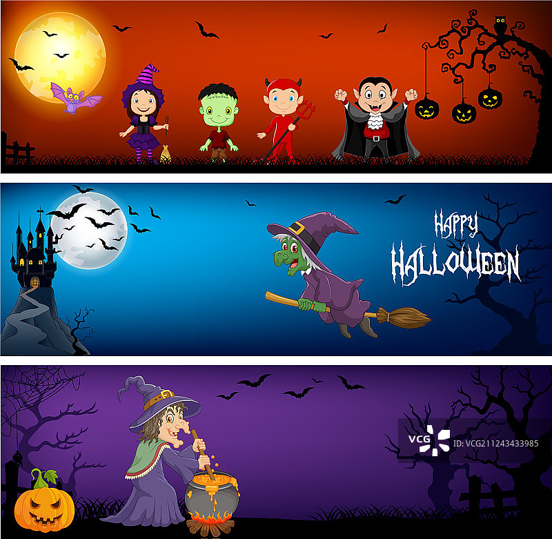三款万圣节banner图片素材作品是由视觉中国旗下网站(VCG.COM)的图片品牌合作方:Vectorstock提供,作品作者是:tigatelu;图片ID:VCG211243433985;最大规格:EPS 矢量图形;存储大小:4.81 MB - EPS;授权方式是:;当前图片素材提供下载与正版授权服务,助力您的品牌提升。