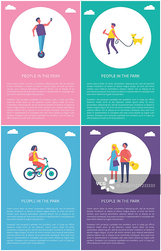 在公园里放松和休息的人们卡通海报:男孩骑独轮车,女孩骑自行车,男人遛狗图片素材作品是由视觉中国旗下网站(VCG.COM)的图片品牌合作方:Ingram Vectors提供,作品作者是:Ingram Image;图片ID:VCG211277233333;最大规格:EPS 矢量图形;存储大小:4.71 MB - EPS;授权方式是:;当前图片素材提供下载与正版授权服务,助力您的品牌提升。