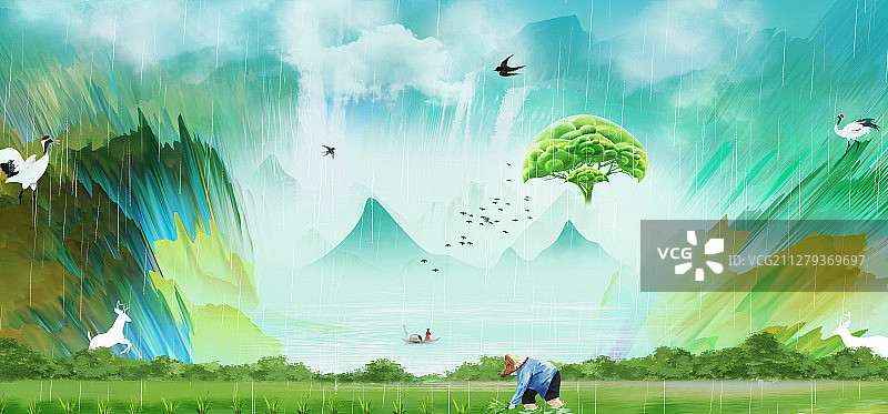 绿色新中式淡雅插秧山水插画图片素材作品是由视觉中国旗下网站(VCG.COM)的图片品牌合作方:Shijue Focus提供,作品作者是:;图片ID:VCG211279369697;最大规格:8522 x 3975 px (300ppi) | TIFF 96.92 MB;存储大小:14.43 MB - JPG;授权方式是:;当前图片素材提供下载与正版授权服务,助力您的品牌提升。