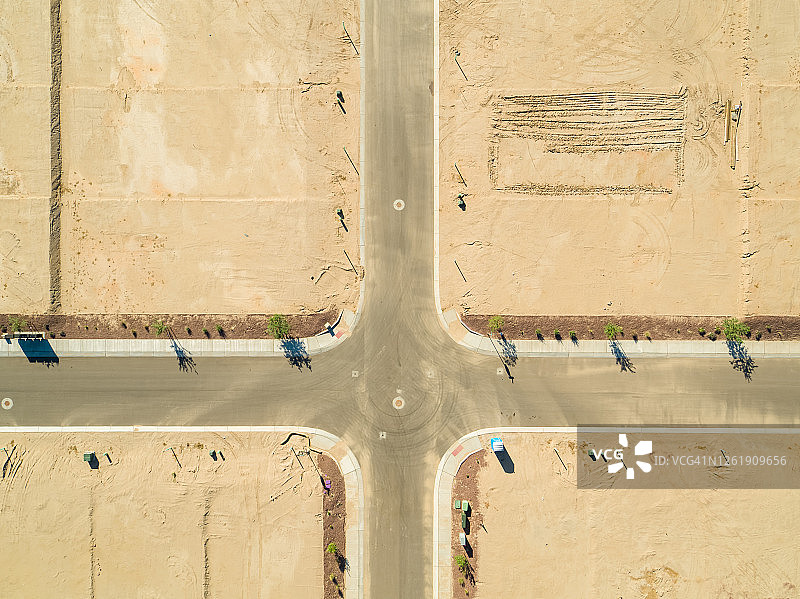 等待房屋建设的分级土地上的道路交叉口图片素材