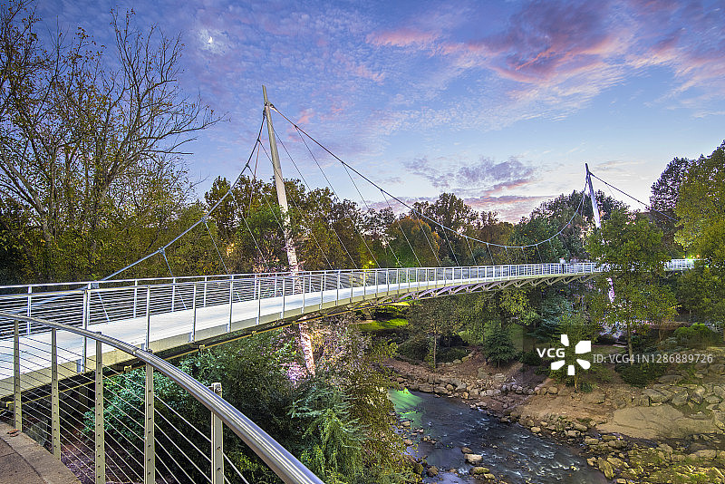 自由桥,里迪瀑布公园,南卡罗来纳州格林维尔图片素材