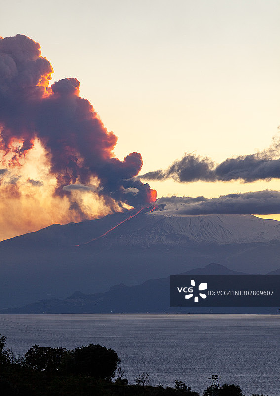 埃特纳火山在2021年2月16日的喷发,从卡拉布里亚雷焦拍摄图片素材