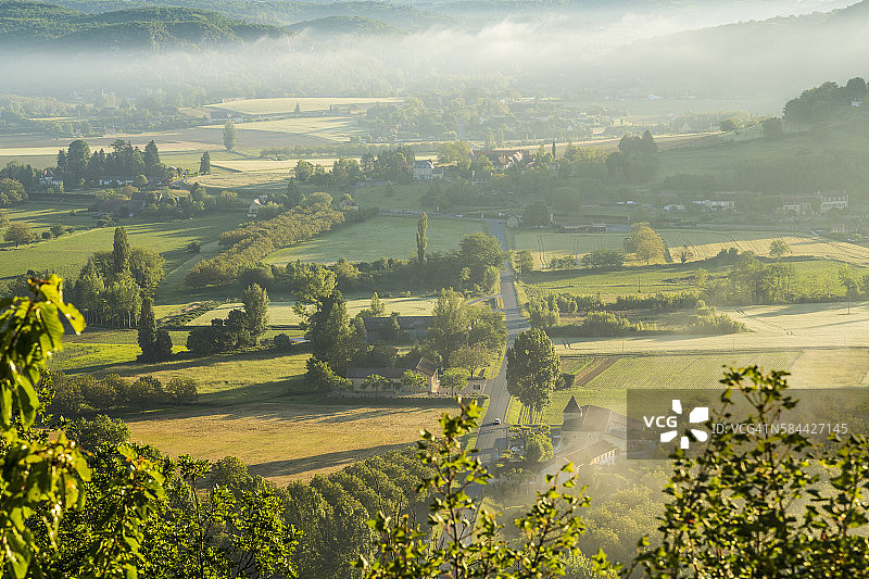 道路与清晨的薄雾,多尔多涅,法国图片素材