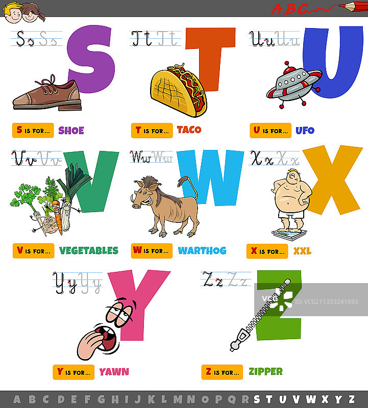 儿童教育卡通字母图片素材作品是由视觉中国旗下网站(VCG.COM)的图片品牌合作方:Vectorstock提供,作品作者是:Igor_Zakowski;图片ID:VCG211333241693;最大规格:EPS 矢量图形;存储大小:6.77 MB - EPS;授权方式是:;当前图片素材提供下载与正版授权服务,助力您的品牌提升。