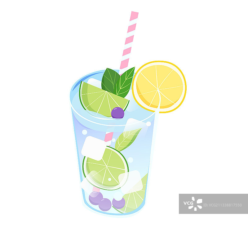 一杯柠檬冷饮饮料矢量插画元素图片素材