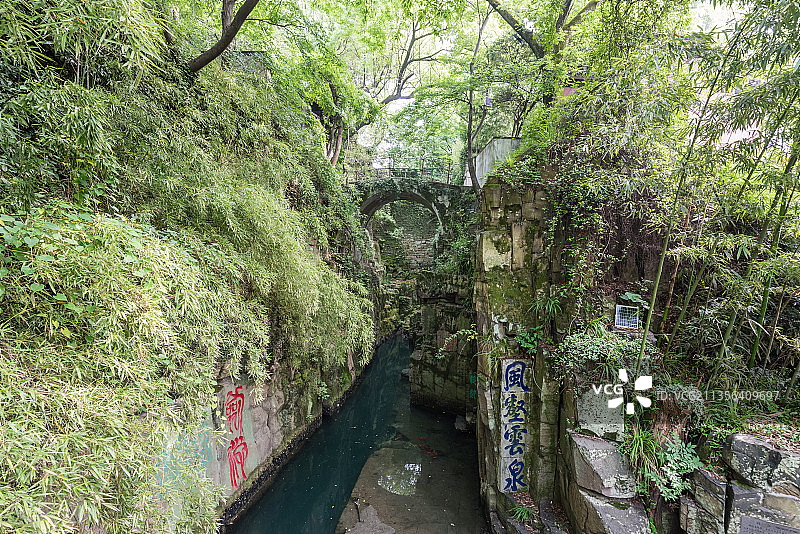 中国苏州虎丘山的虎丘剑池和摩崖石刻