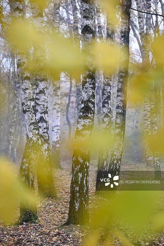沙桦树,疣桦树,工业林,莱茵巴本矿渣堆上的桦树林,德国北莱茵-威斯特法伦州图片素材