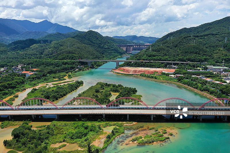 广东省河源市东源县万绿湖新丰江水库大坝景区航拍图片素材