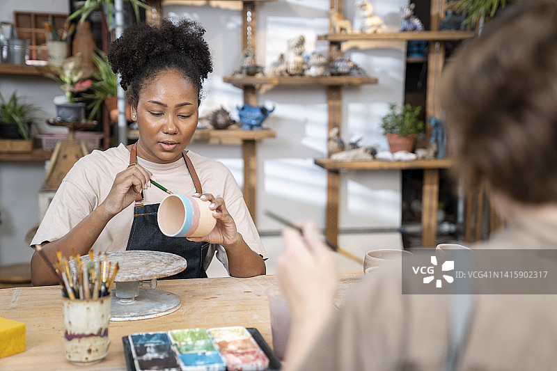 在工作室绘画的非裔美国艺术家图片素材