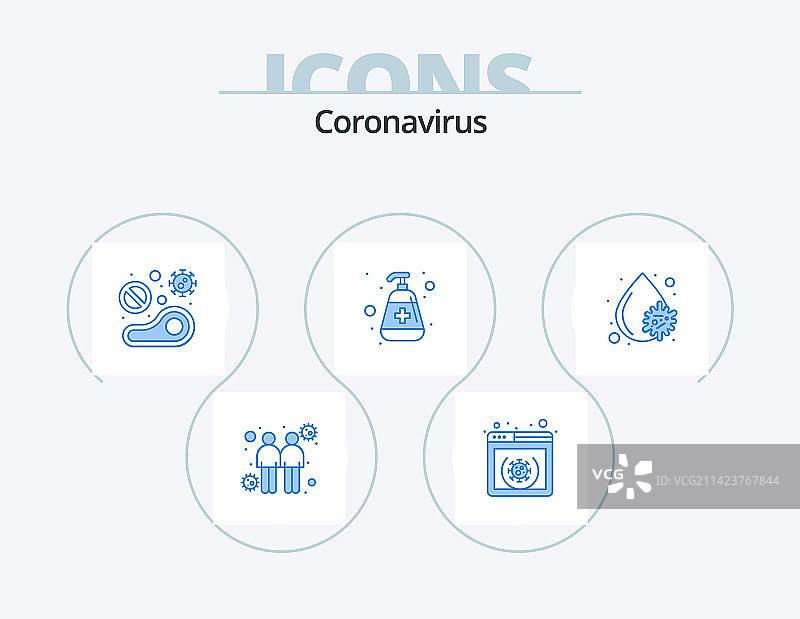 蓝色新冠病毒图标包(5个医疗图标设计)图片素材
