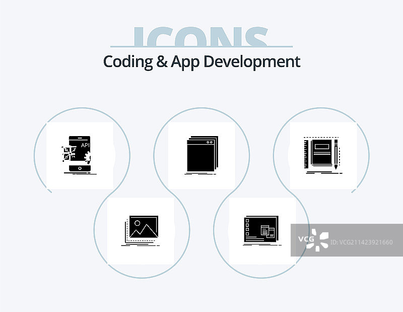 编码和App开发字形图标包5个图标图片素材作品是由视觉中国旗下网站(VCG.COM)的图片品牌合作方:Vectorstock提供,作品作者是:Flatart;图片ID:VCG211423921660;最大规格:EPS 矢量图形;存储大小:1.11 MB - EPS;授权方式是:;当前图片素材提供下载与正版授权服务,助力您的品牌提升。