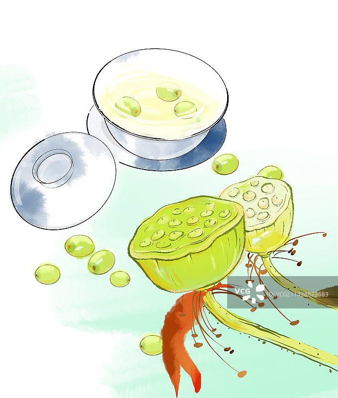 夏天莲子茶,水墨风格茶文化茶花图片素材