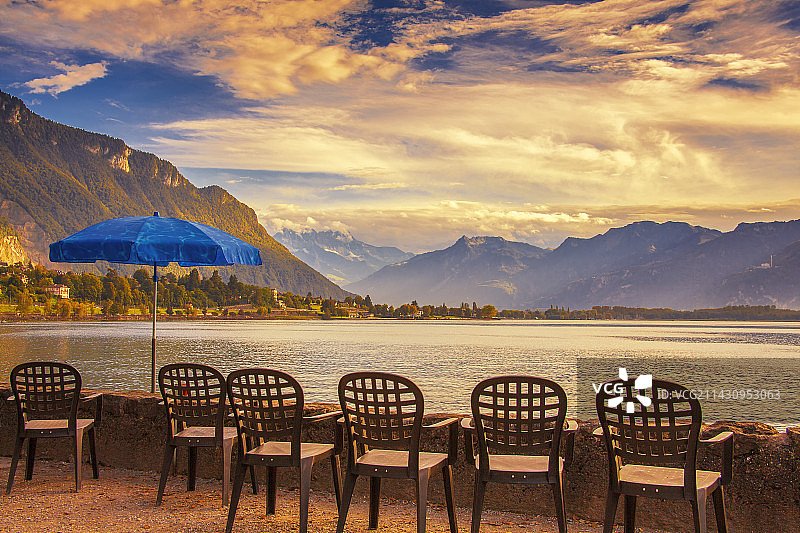 日内瓦湖(LakeGeneva)的黄昏图片素材
