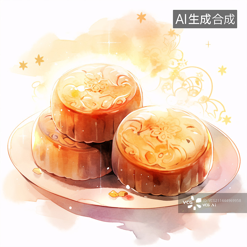 【AI数字艺术】美味的月饼水彩插曲图片素材