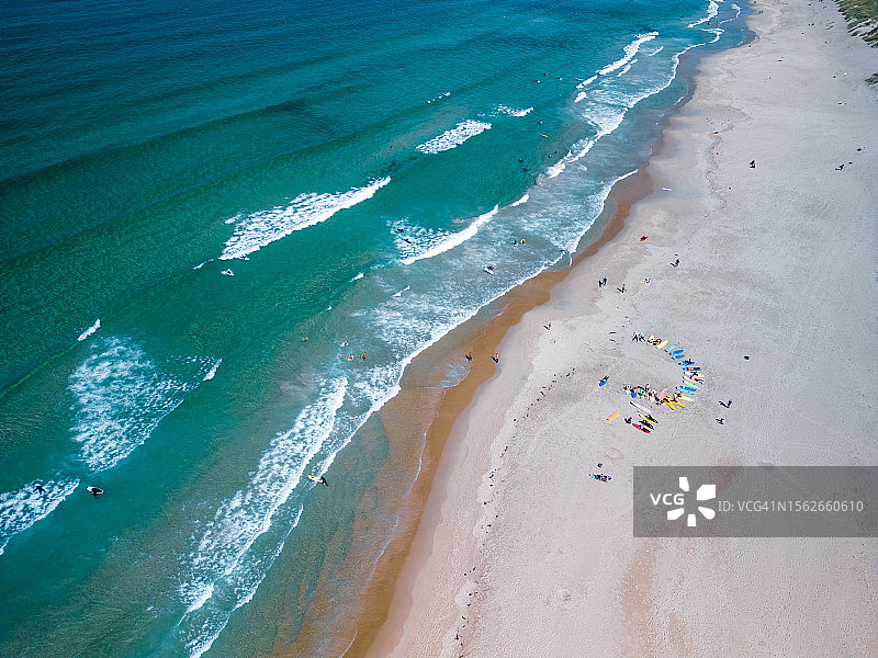 在挪威博雷海滩从上方看到的冲浪者图片素材