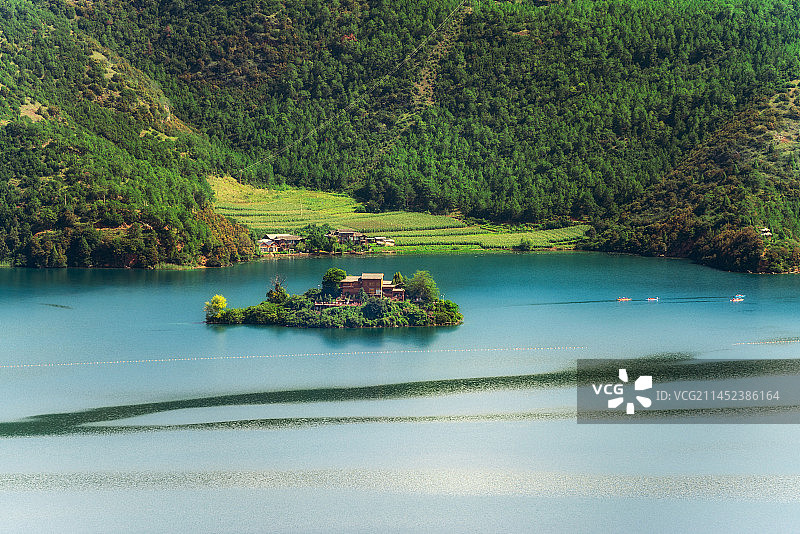 中国四川省凉山州盐源县泸沽湖王妃岛航拍图
