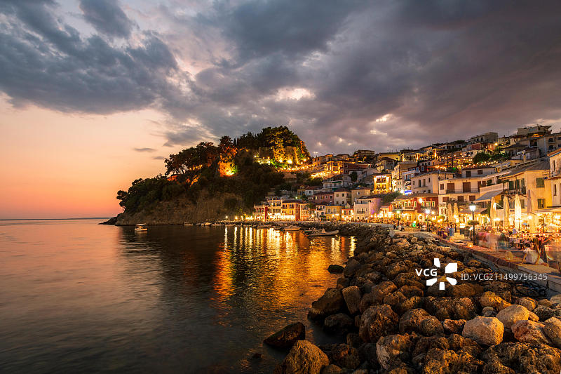希腊普雷韦扎帕尔加城堡和度假胜地的傍晚景色图片素材