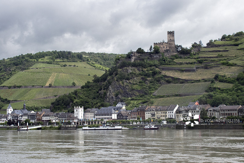 俯瞰莱茵河考布村的古滕费尔斯城堡图片素材