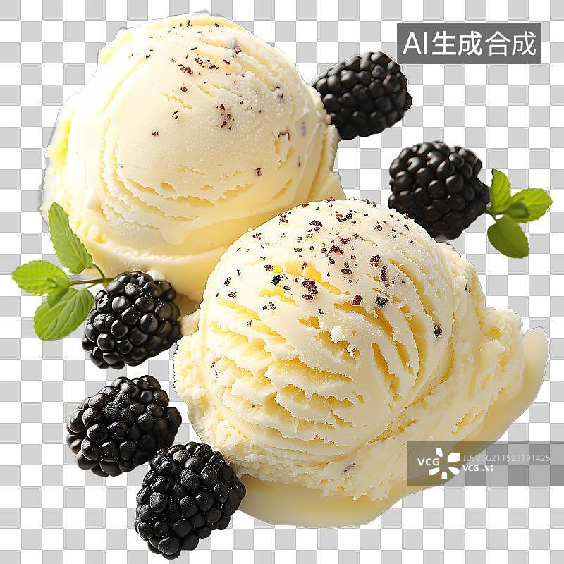 【AI数字艺术】免抠|香草冰淇淋配黑莓和薄荷