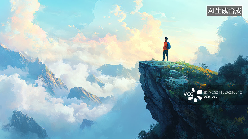 【AI数字艺术】户外悬崖上的背包客图片素材