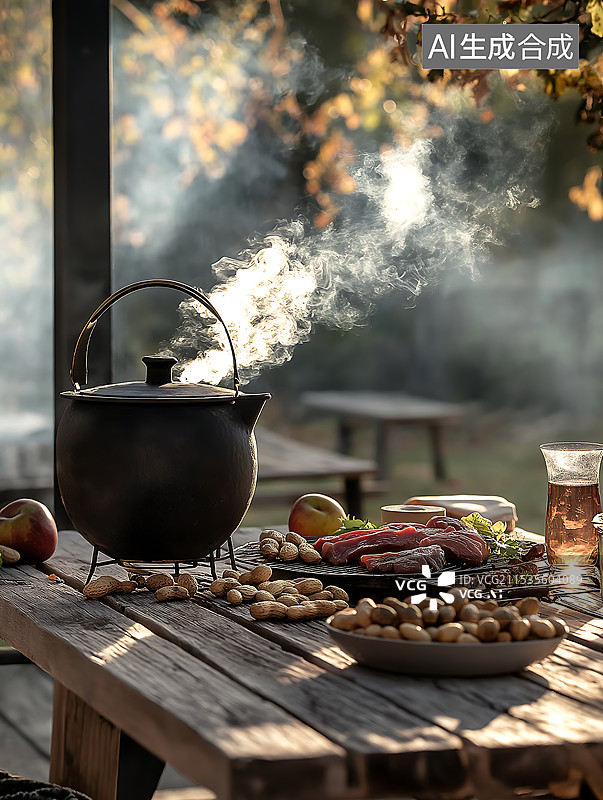 【AI数字艺术】热气腾腾的围炉煮茶桌面图片素材