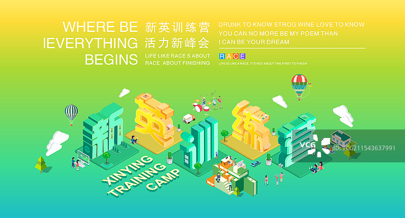 2.5D活力背景,年轻卡通背景,训练营背景