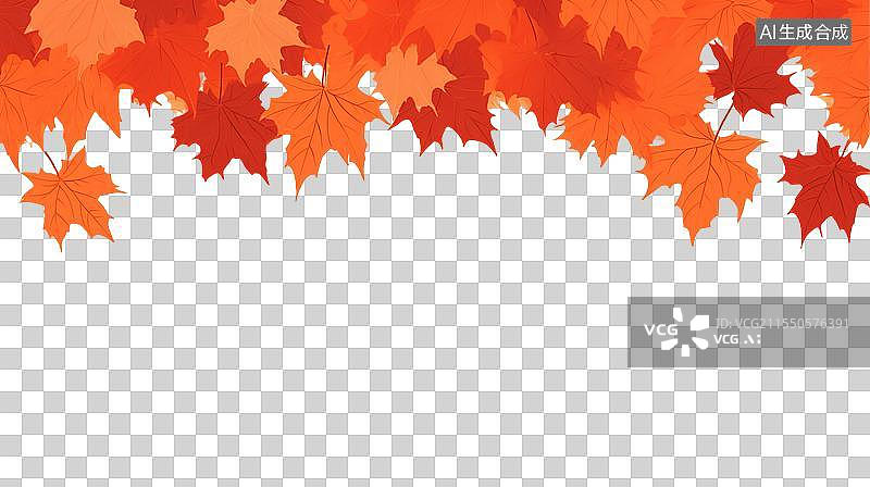 【AI数字艺术】秋天二十四节气橙红色枫叶免抠边框装饰居上图片素材