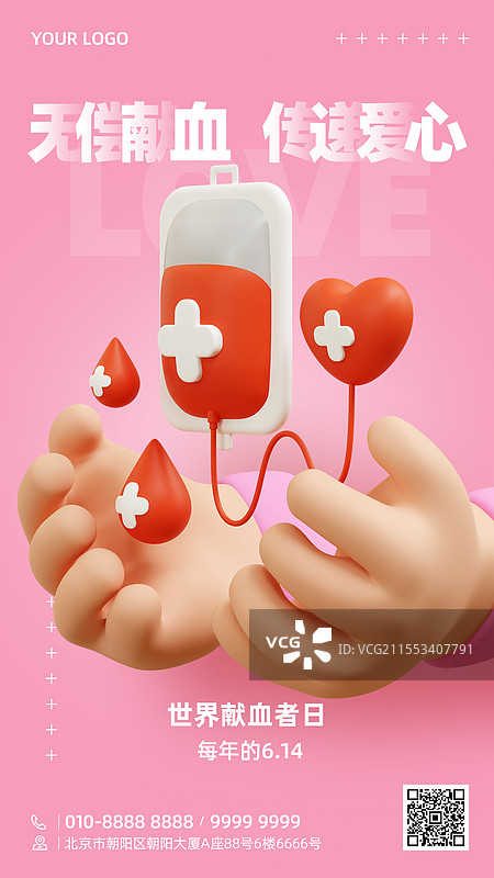 三维图形立体风格世界献血者日主题商业海报手机海报设计模板