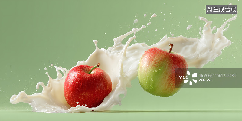 【AI数字艺术】绿色背景下乳饮品中的苹果图片素材