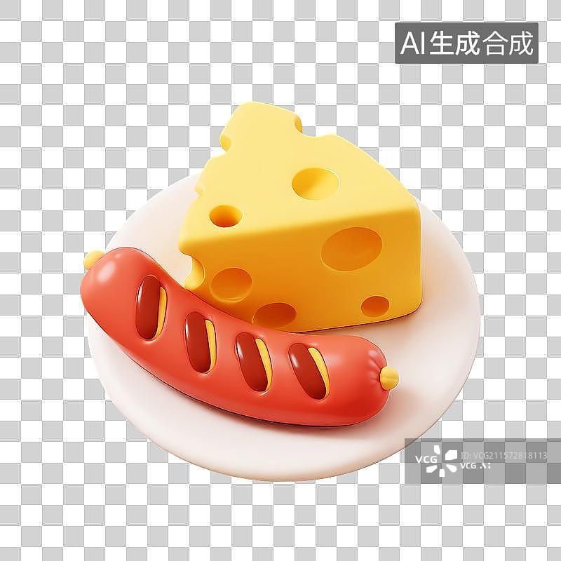 【AI数字艺术】图标3d卡通营养早餐香肠奶酪图片素材
