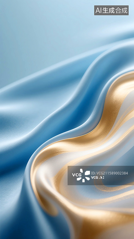 【AI数字艺术】蓝色与香槟色交织的丝绸质感背景图片素材