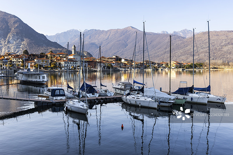 意大利皮埃蒙特大区马焦雷湖费里奥洛港口的帆船图片素材