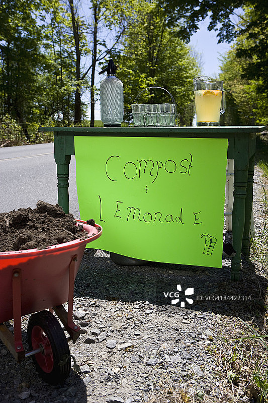 乡村道路上的柠檬水和堆肥摊位图片素材